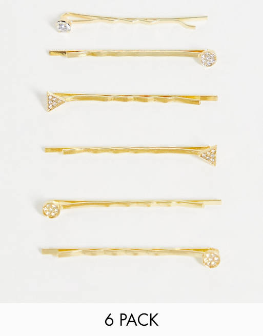 Multipack de 6 horquillas para el cabello con diseño variado de incrustaciones de cristales exclusivo de DesignB London