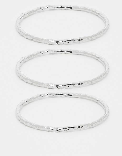 Pack de 3 pulseras plateadas sin cierres efecto fundido de DesignB London