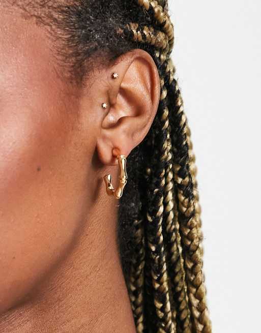 Pendientes de aro dorados con diseño de bambú de DesignB London