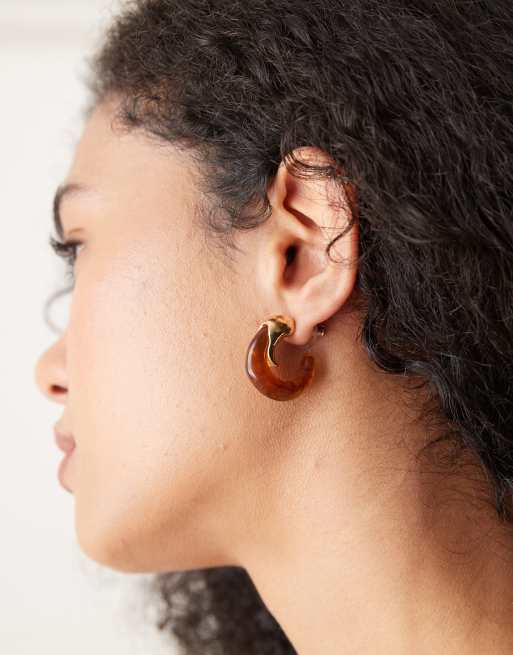 Pendientes de aro gruesos dorados y marrones con diseño efecto fundido de resina de DesignB London