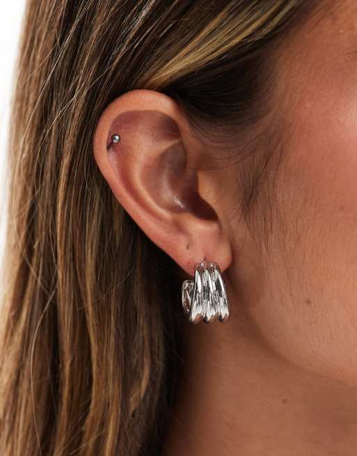 Pendientes de aro plateados gruesos con diseño de tres hileras de DesignB London