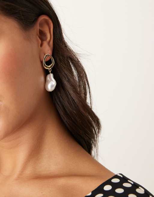Pendientes de botón dorados con diseño colgante de perlas efecto fundido de DesignB London