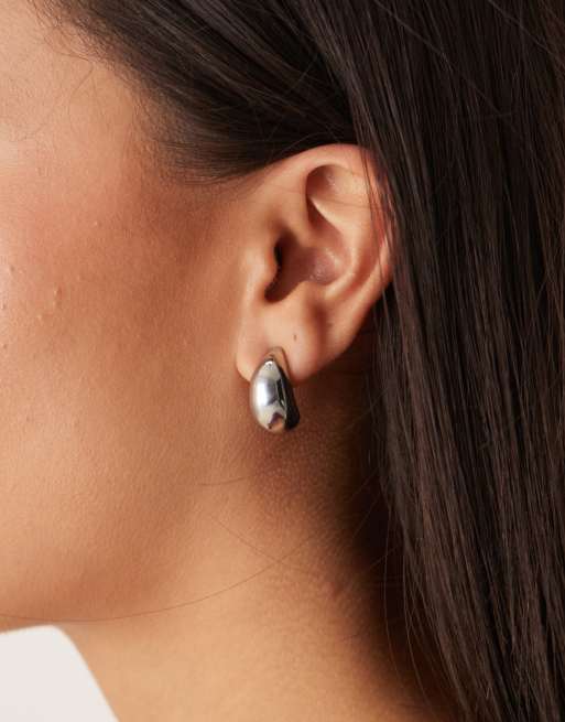 Pendientes de botón plateados con diseño de gota de DesignB London