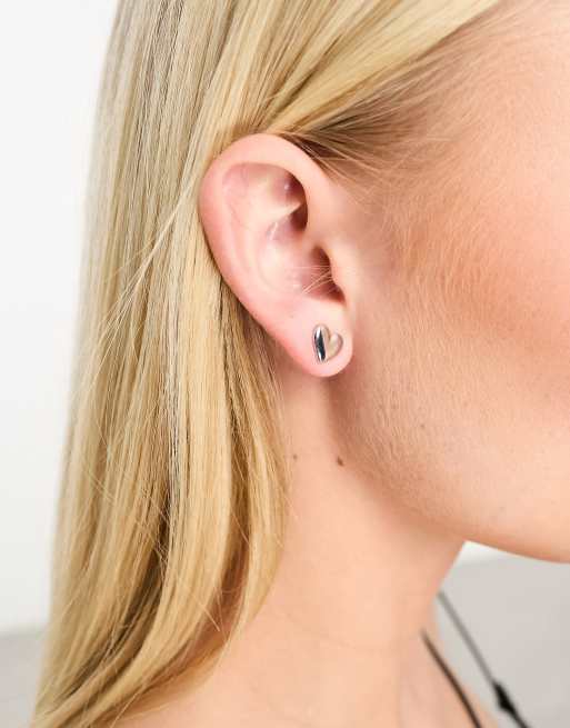 Pendientes de botón plateados en forma de corazón de DesignB London