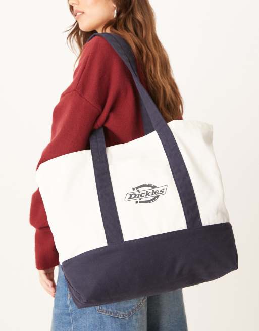 Bolso tote blanco hueso y azul marino con logo de lona de Dickies