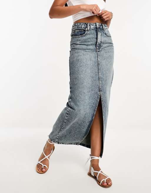 Falda vaquera midi azul con abertura delantera y lavado ácido de DTT