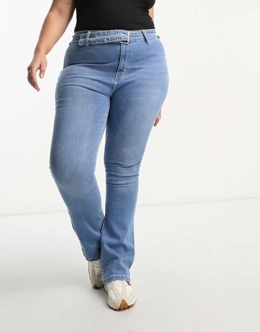 Vaqueros azules de talle alto y pernera ancha con cinturón Phoebe de Don't Think Twice Plus