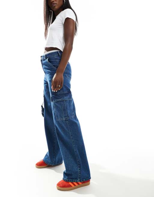 Vaqueros cargo de pernera recta con lavado azul medio Dom de DTT