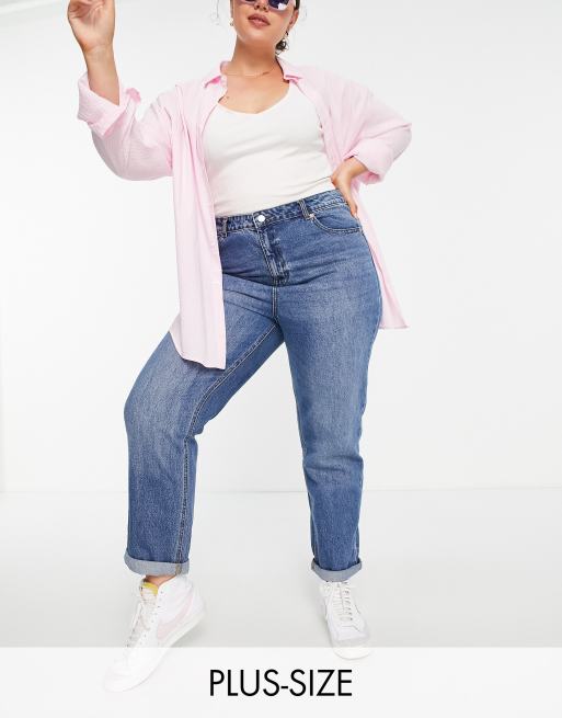 Vaqueros mom holgados con lavado azul medio Veron de DTT Plus