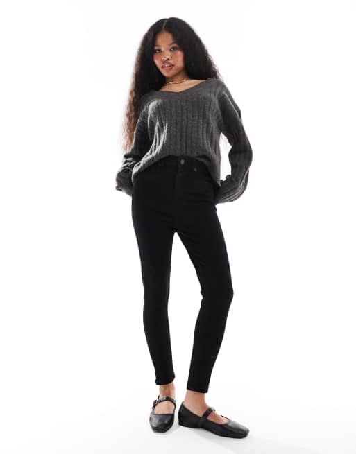 Vaqueros negros de corte pitillo y talle alto Ellie de DTT Petite