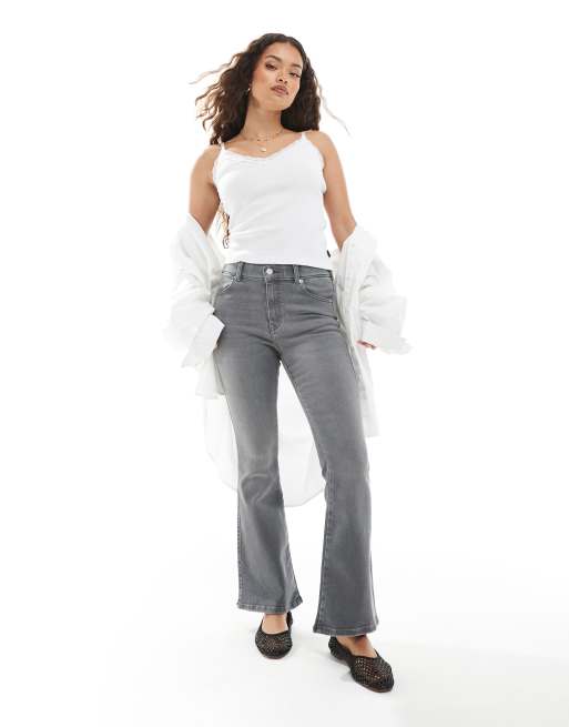 Vaqueros gris lavado de pernera bootcut slim y talle medio Lexy de Dr Denim Petite