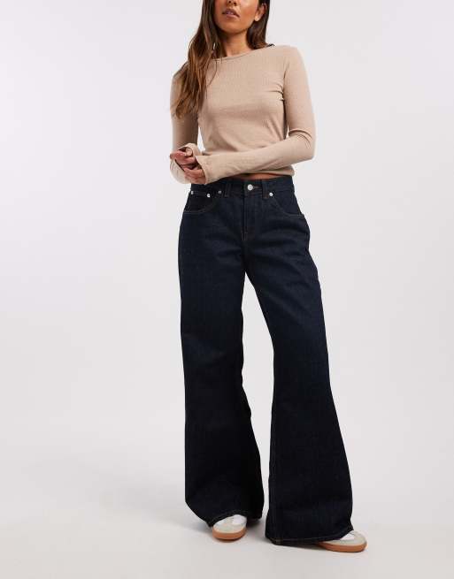 Vaqueros azul añil de corte ancho y talle bajo con lavado oscuro Rhue de Dr Denim