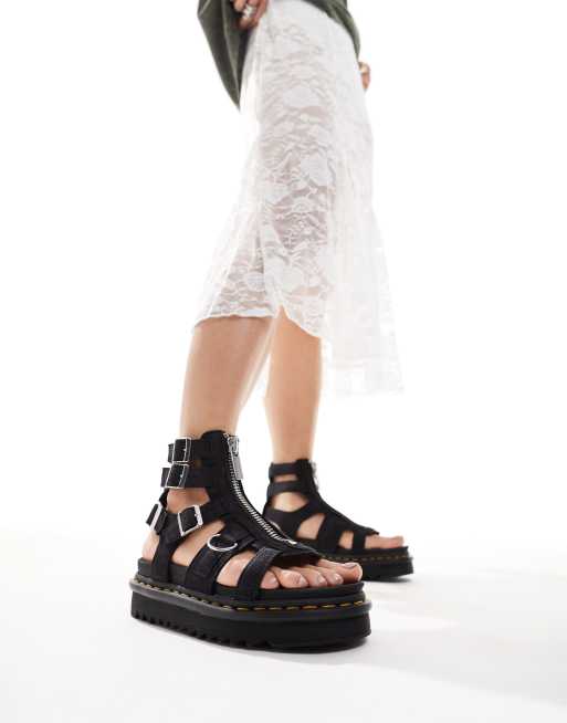 Sandalias romanas gris carbón de nobuk Olso de Dr. Martens