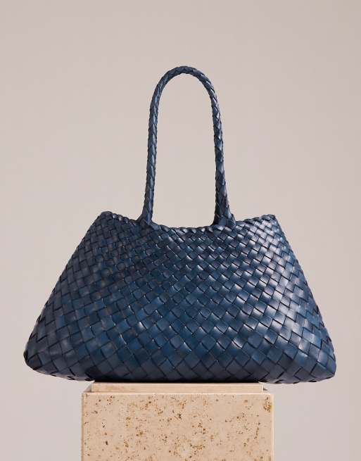 Bolso grande azul marino de cuero con diseño entretejido Santa Croce de Dragon Diffusion
