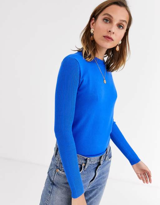 Jersey de punto azul cobalto con cuello redondo de Gianni Feraud