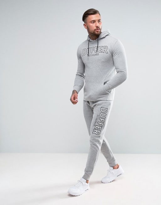 Joggers ajustados y sudadera con capucha en gris de Duffer