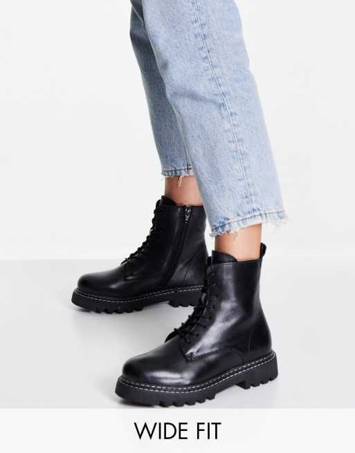 Botas negras con suela gruesa y cordones de cuero de Dune London Wide Fit