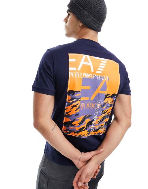 Camiseta azul marino con recuadro del logo en el pecho y la espalda de Armani EA7
