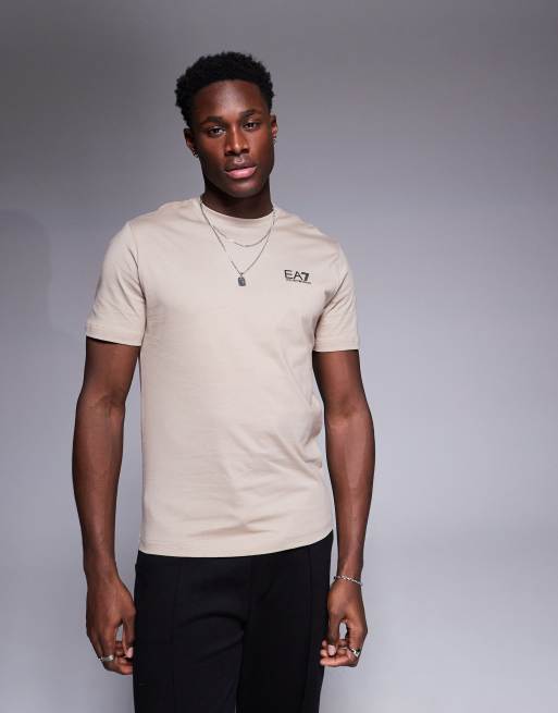 Camiseta beis con cuello redondo y logo de Armani EA7