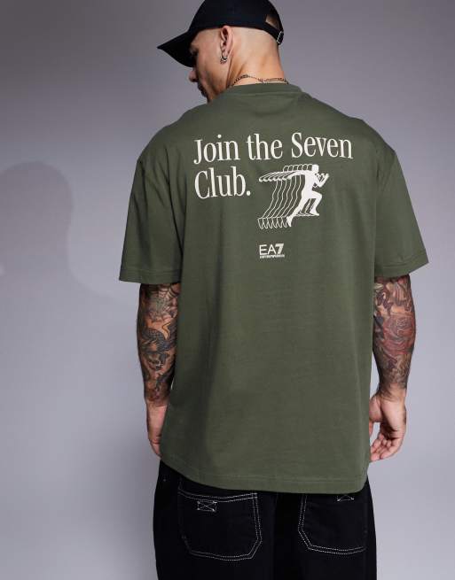 Camiseta verde con logo estampado en el pecho y la espalda de EA7