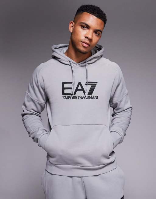 Sudadera gris con capucha y logo Train Visibility de Armani EA7 (parte de un conjunto)