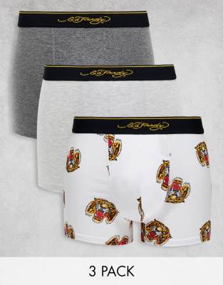 Pack de 3 calzoncillos bóxer negros con estampado de tatuajes de Ed Hardy