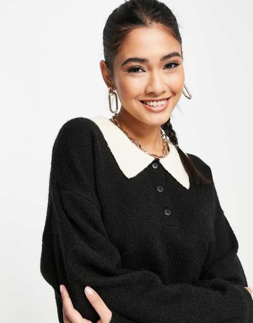 Jersey negro con solapas en contraste y botones delanteros de EDITED