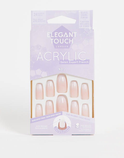 Uñas postizas estilo uñas acrílicas cuadradas con manicura francesa No. 02 de Elegant Touch
