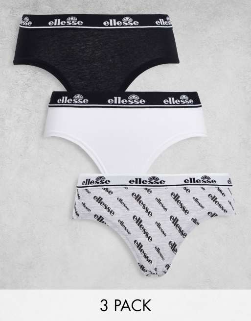 Pack de 3 braguitas de color negro, gris y blanco con logo de punto de ellesse