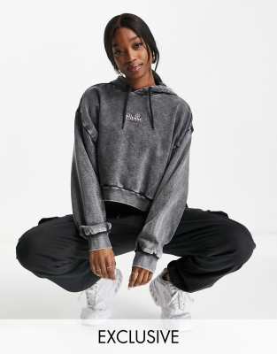 Sudadera negra con capucha, lavado ácido y logo de ellesse