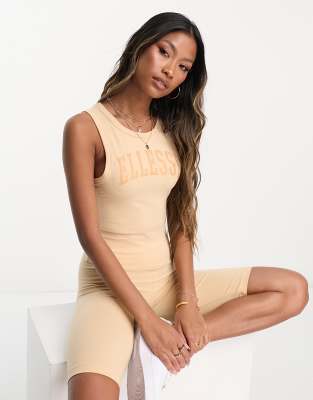 Top corto marrón claro con logo de estilo universitario Fliss de ellesse