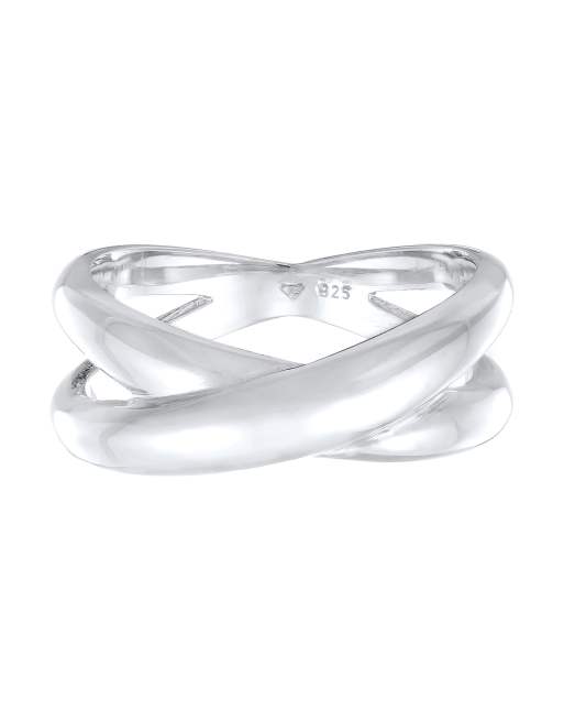 Anillo plateado con diseño envolvente cruzado de plata de ley 925 de Elli