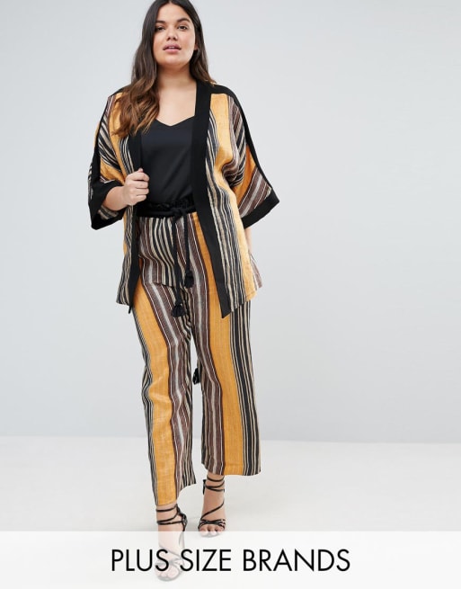 Kimono y pantalones de conjunto a rayas de Elvi Premium