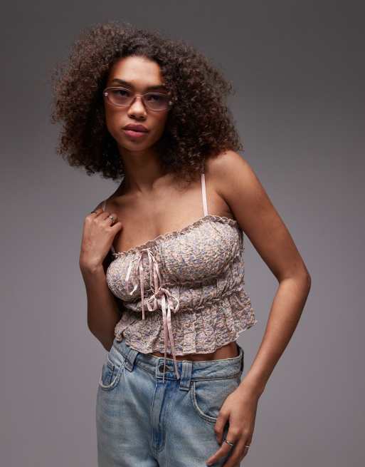 Top rosa de tirantes con estampado floral y detalle de lazada de Emory Park