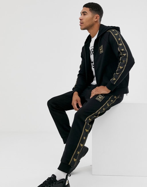 Chándal negro con detalle de cintas doradas con el logo de Emporio Armani