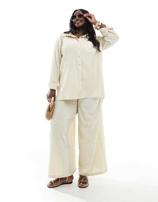 Conjunto playero color piedra de tejido texturizado de Esmée Curve