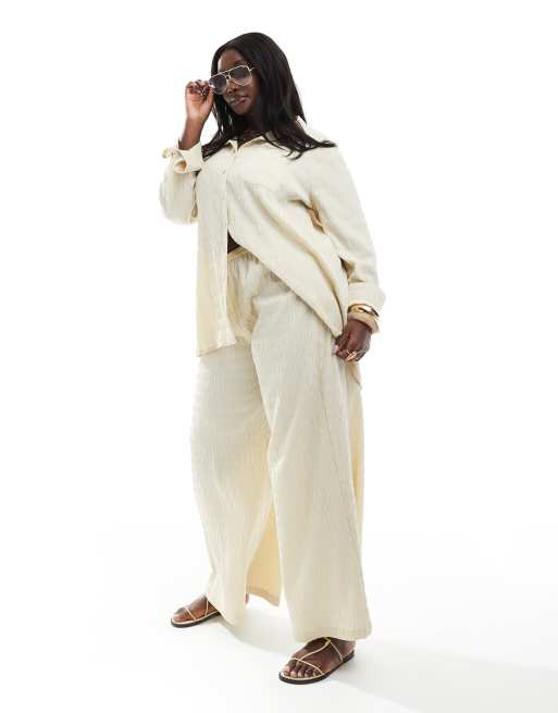 Pantalones playeros color piedra de tejido texturizado exclusivos de Esmée Curve (parte de un conjunto)