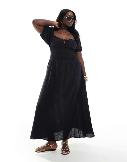 Vestido playero largo negro con lazada delantera y mangas abullonadas exclusivo de Esmée Curve