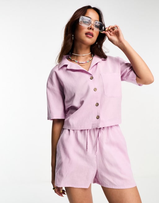 Conjunto playero lila de lino exclusivo de Esmée