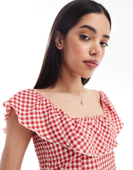 Top playero corto a cuadros vichy rojos con detalle de volante exclusivo de Esmee
