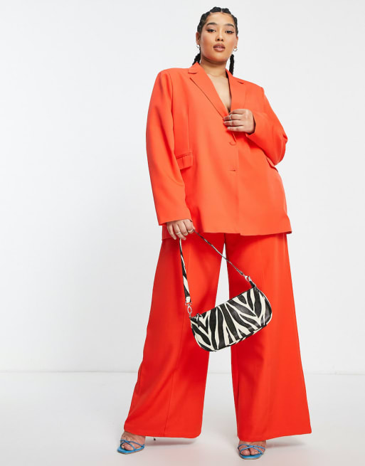 Conjunto color mandarina de americana holgada y pantalones de pernera ancha de Extro & Vert Plus