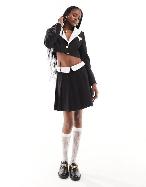 Conjunto de sastre negro de americana corta y falda plisada de Extro & Vert
