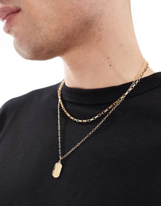 Collar de varias hileras dorado con colgante de placa de Faded Future