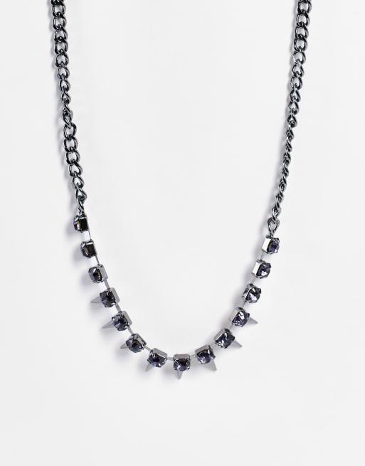 Collar en tono plomo con diseño de púas con gemas de Faded Future