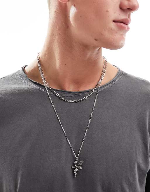 Collar plateado de varias hileras con colgante de querubín de Faded Future