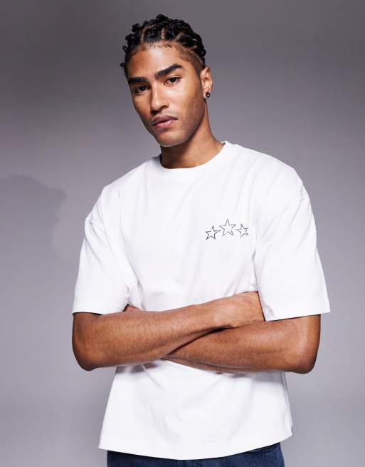 Camiseta blanca con estampado gráfico de estrellas en la espalda de Faded Store