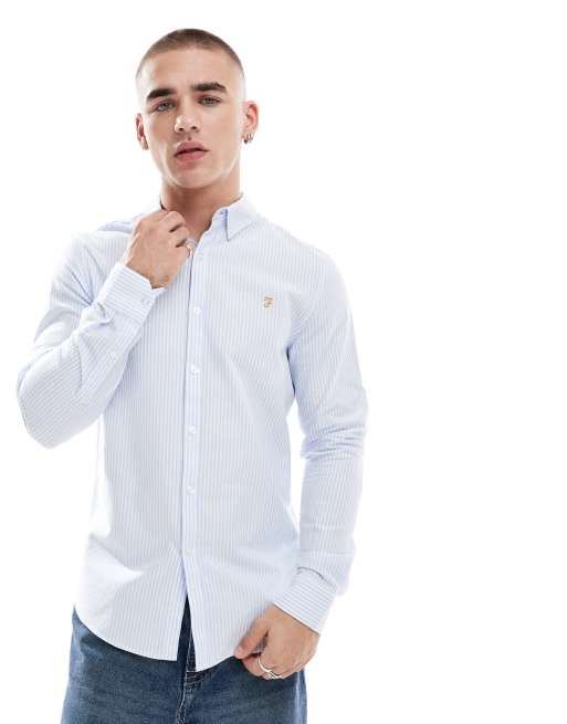 Camisa azul marino y blanca a rayas de manga larga Brewer de Farah
