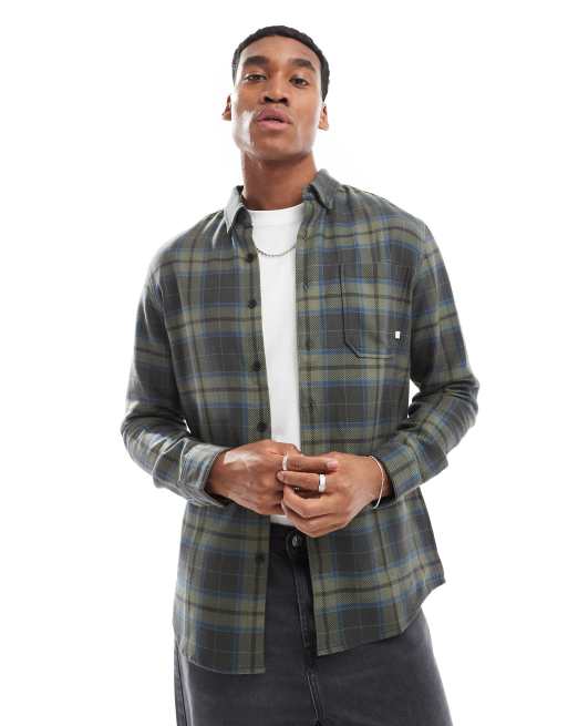 Camisa negra y verde a cuadros de manga larga Marcelo de Farah