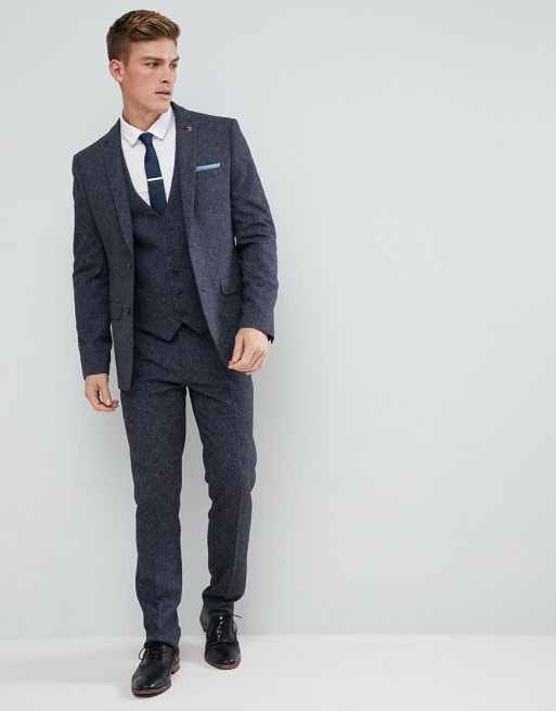 Chaqueta de traje ajustada en azul marino jaspeado de Farah
