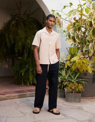 Pantalones azul marino de pernera ancha con cordón ajustable en la cintura Greenport de Farah